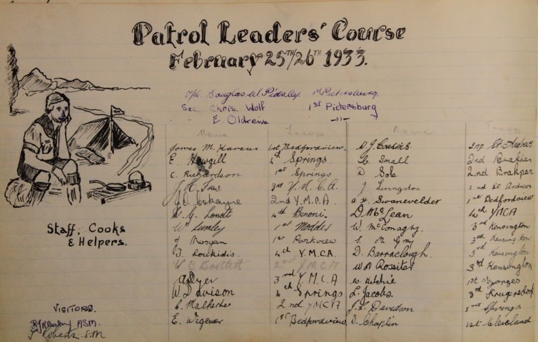 Gilwell Log Books 1st Gillwell Logbook 1926-1955 37-Small Image 37 of 221 Black Album 1958-1960 Page-27-Small Image 1 of 36 Boy Scouts of SA 56-64 Page-52-Small Image 1 of 84 Boy Scouts of SA 68-75 Page-56-Small Image 1 of 88 Boy Scouts of SA 76-81 Page-56-Small Image 1 of 91 Boy Scouts of SA 81-89 Cover-Page Image 1 of 153 Boy Scouts of SA 1989-1992 Page-50-Small Image 1 of 81 Gilwell – 4th Benoni 1920-1954 Page-26-Small Image 1 of 34 Miss Gladys Gunning – 1923-1936 Page-13-Small Image 1 of 26 Up to June 2012 IMG_0124 Image 1 of 105 Visitors’ Book Cover-Page Image 1 of 186 BP Coach Restoration Album Page-1-Medium Image 1 of 26
