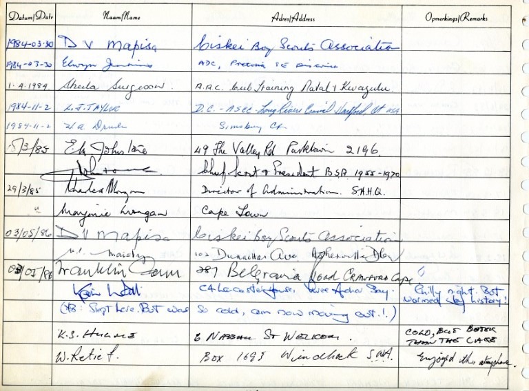 Gilwell Log Books 1st Gillwell Logbook 1926-1955 1 Image 1 of 221 Black Album 1958-1960 Page-27-Small Image 1 of 36 Boy Scouts of SA 56-64 Page-52-Small Image 1 of 84 Boy Scouts of SA 68-75 Page-56-Small Image 1 of 88 Boy Scouts of SA 76-81 Page-56-Small Image 1 of 91 Boy Scouts of SA 81-89 Cover-Page Image 1 of 153 Boy Scouts of SA 1989-1992 Page-50-Small Image 1 of 81 Gilwell – 4th Benoni 1920-1954 Page-26-Small Image 1 of 34 Miss Gladys Gunning – 1923-1936 Page-13-Small Image 1 of 26 Up to June 2012 IMG_0124 Image 1 of 105 Visitors’ Book Cover-Page Image 1 of 186 BP Coach Restoration Album Page-23-Medium Image 23 of 26